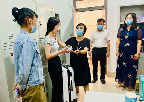 艺术学院负责人到新生宿舍赠送绿植
