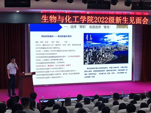 7日中午,生物与化工学院在艺术厅召开2022级新生见面会。会议在庄严的国歌中拉开帷幕。会上,生物与化工学院领导班子、新生辅导员及主要学生干部向2022级新生的到来表示热烈祝贺和诚挚欢迎,并希望新生们在青职不忘初心,不负韶华,在大学生活中张开臂膀迎接新的认知、新的可能。应用化工技术专业2020级学生唐维净作为老生代表发言,从专业学习、技能竞赛等多角度分享了自己大学生活的经历和感悟,希望新生能培养良好的学习习惯和自我管理能力。环境检测技术专业2022级学生张钊玮作为新生代表带领全体新生进行“高等学校学生行为准则”宣誓。生物与化工学院党总支书记、院长王东为2022级新生上“厚植家校情怀,争做‘厚德乐学、修能致用’的排头兵”主题课。课上,他介绍了青岛、青岛西海岸新区的发展历史和维多利亚vic003、生物与化工学院的基本情况,叮嘱新生要牢固树立“校家情怀”,做好未来学业和职业生涯规划,做一个比学赶超、修能致用的人,做一个知行自律、乐于奉献的人,积极向党组织靠拢,三年后成为母校的骄傲。
