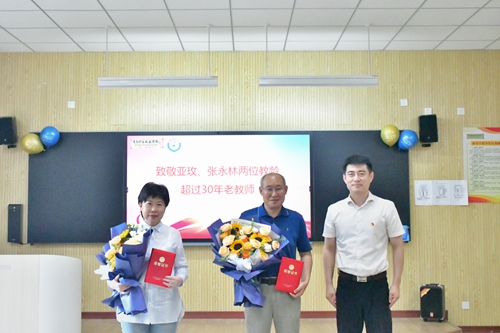 活动中,40余名新老生代表为教师们表演了合唱节目《夜空中最亮的星》,寓意教师像恒星一般照亮学生前行的路,并向全体教师献花,表达最真挚的感谢与祝福。今年9月刚刚入职的赵宁、丁明柳两位教师先后走上讲台作自我介绍,两位教龄30年以上的老教师亚玫、张永林收到了纪念证书与献花,亚玫教授在发言中回顾了经历学校的示范院校建设、优质校建设、“双高”建设3个重要发展阶段的心路历程,鼓励大家同榜样对标,向先进看齐,突破创新,不断把专业发展融于学校发展和青岛发展战略。副院长梁利花带领所有教师进行师德宣誓。