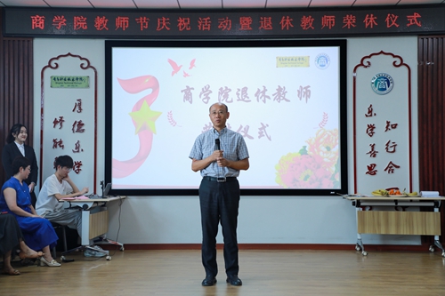 为进一步推进师德建设,弘扬尊师重教的良好风尚,9月8日下午,商学院在创意楼A304举办“迎接党的二十大培根铸魂育新人”教师节庆祝活动暨退休教师荣休仪式。学校纪委书记刘伟与商学院全体教师、学生代表齐聚一堂,共同庆祝第38个教师节。活动由商学院副院长杨晓黎主持。
