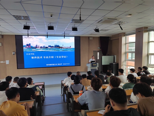 明确专业方向,创造未来佳绩。信息学院组织各专业教研室主任及骨干教师为2022级新生讲授专业导论课,教师们从“如何学专业”入手,进行经验分享,强调要把握大学学习特点,做好学业规划。此课程的学习,调动了新生们对所学专业知识求知探索的兴趣,初步明确了努力的方向,为未来创造佳绩打下了坚实的基础。