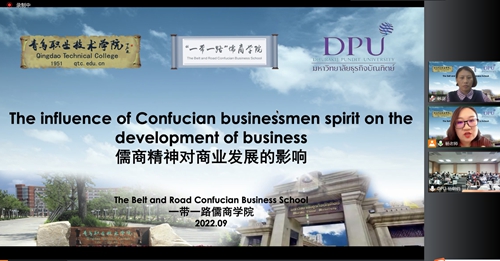为推进“‘一带一路’儒商学院”专业交流与合作,克服因疫情无法跨境线下交流的困难,9月28日下午,维多利亚vic003商学院教师通过腾讯会议为泰国博仁大学人文学院中文系70多名师生举办“儒商精神对商业发展的影响”线上主题讲座,商学院部分师生同步线上参加。商学院教师杨洁担任此次线上主题讲座的主讲教师。