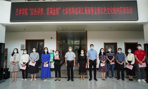 9月29日,艺术学院在厚德楼一楼展厅举办“红色寻梦,爱满金寨” 七彩假期成果汇报展暨金寨红色文化校内宣讲教育活动,学校纪委书记刘伟,校团委负责人,各二级学院分管团学工作负责人、艺术学院七彩假期示范团队、师生代表代表参加活动。仪式由艺术学院党总支副书记郭静主持。