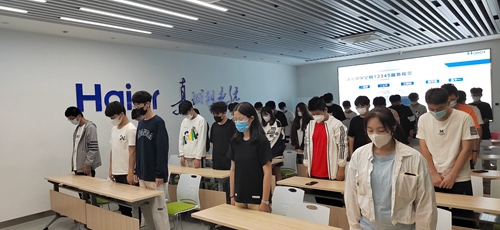 上午10时,海尔学院(青德学院)团总支组织学生干部和各团支部观看了烈士纪念日向人民英雄敬献花篮仪式直播。观看过程庄严肃穆,伴随着直播画面,师生神情严肃,集体向为中国人民解放事业和共和国建设事业英勇献身的烈士默哀,深切缅怀为实现民族独立和复兴、为谋求人民解放和幸福、为建立新中国和建设新中国而英勇牺牲的革命烈士们,向他们致以最深切的哀思和最崇高的敬意,在铭记历史中汲取精神力量,在抚今追昔中坚定前行意志。
