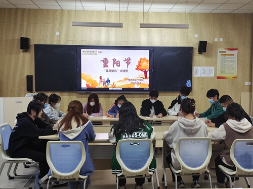 活动中,结合重阳节登高赏秋、品茶赏菊、感恩敬老等传统习俗,学生们在校园里寻找秋的印记,拍摄菊花、桂花、银杏等具有秋天特色的植物,寻找落叶并制作成手抄报。生物与化工学院团总支还组织2022级新生举办“登高望远谈理想”座谈会,学生们从自身实际出发,依次谈了对理想信念的理解,有的学生介绍了《万里归途》观影感受,表示要心系群众,以全心全意为人民谋幸福谋发展为目标努力学习;有的学生介绍了家乡的红色文化,立志要传承红色基因,为实现百年奋斗目标而奉献一生;有的学生谈了加强学习、提升本领的重要性。