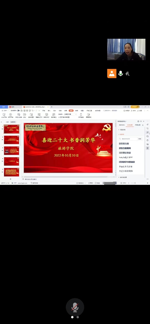旅游学院第四党支部开展“喜迎二十大 书香润芳华”读书分享主题活动