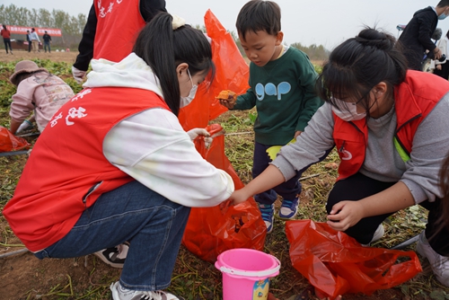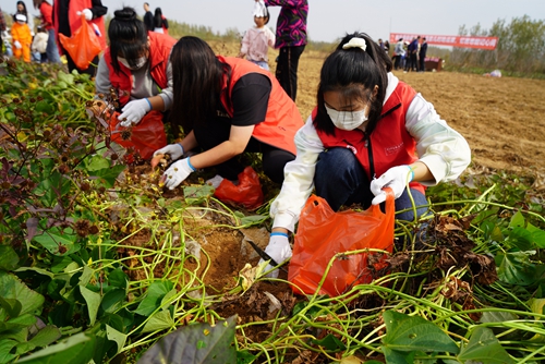 志愿者积极投入挖红薯劳动