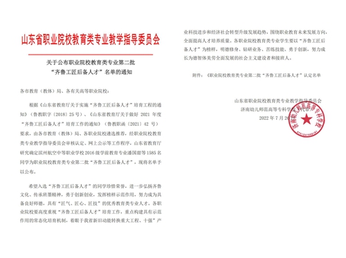 《关于公布职业院校教育类专业第二批 “齐鲁工匠后备人才”名单的通知 》