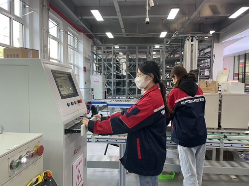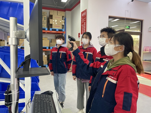 “进军班”同学在京东物流实训基地演示出入库作业