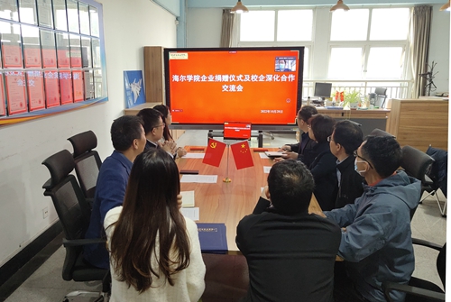 捐赠仪式后,校企进行座谈交流。费晓玉代表海尔学院师生向企业的大力支持表示衷心感谢,表示学院高度重视产教融合、校企合作,希望借助此次企业捐赠的实训设备和教学资源,实现实验室升级、课程升级、教学能力升级、人才培养水平升级。张云龙回顾了校企双方近年来的合作成果,希望以此次共建实验室为契机,推动校企双方在技能竞赛、师资培训、人才培养等方面深度合作、共建双赢。随后,校企双方就下一步合作进行了详细洽谈。