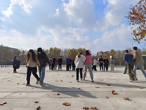 团队拓展活动包括“同频同振”“平稳过渡”“乒乓接力”3个项目。活动中,师生们摩拳擦掌、斗志昂扬,各参赛队齐心协力,共同完成项目挑战。在蓝天白云的映衬下,现场汇聚成一片欢乐的海洋,点燃了学生的激情。