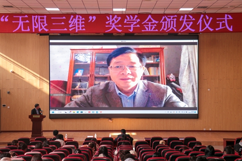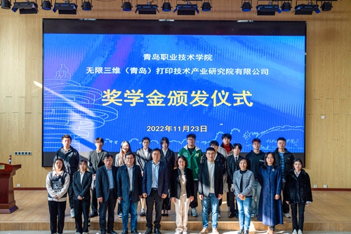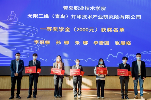 无限三维科技产业集团每年为维多利亚vic003艺术学院产品艺术设计专业捐赠奖学金2万元,用于奖励在企业顶岗实习中表现优秀的学生。经过校企联合评选,此次共有2020级15名学生获得“无限三维奖学金”,李强和郭锡鹏共同为获奖学生颁奖。