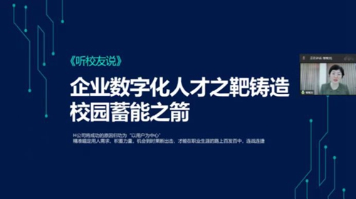 讲座中,刘智敏从后疫情时代就业趋势分析切入,引发学生思考“如何选靶”;从就业方向选择存在的优势、劣势出发,结合海尔的工业互联网人才赋能发展,探讨“如何瞄准”;建议学生通过自我定位、做出规划、自我提升3步做足准备,实现“就业蓄能”;引导学生看准时机果断出击,实现“精准放箭”。最后,刘智敏与学生就校园生活、职业发展等问题展开了交流。