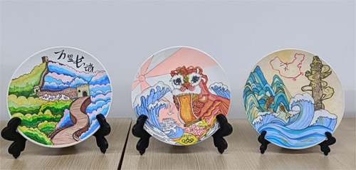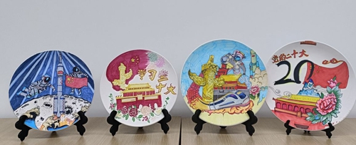 活动伊始,“青之印”志愿宣讲员与前来体验的学生通过共同学习党的二十大报告原文、共谈学习感悟、交流行动方向等方式,深入学习和领会党的二十大精神的丰富内涵和核心要义。随后,学生们以素坯瓷盘、瓷杯、花瓶为造型依托,在其表面运用水彩颜料、丙烯颜料等媒材作画,认真学习了解党的十八大以来波澜壮阔的发展历程,以新时代中国社会取得的历史性成就为绘画灵感,绘出青年学子心中的爱党情感和荣国情怀,表达对祖国山河锦绣、繁荣富强的赞美之情,创作出主题鲜明、色彩纷呈、内涵丰富的手绘作品,以艺术学子的创意智慧和艺术才华礼赞盛世中华。
