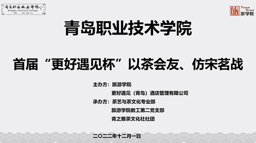 此次大赛由旅游学院及合作企业更好遇见(青岛)酒店管理有限公司联合主办。通过比赛,旅游学院各专业学生以茶会友,品味了宋代点茶文化的精雅,发扬了谦、和、礼、敬的人文精神,传承和发扬了中华优秀传统文化。