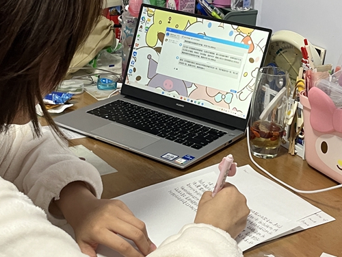 学生在线上进行祈福哀思