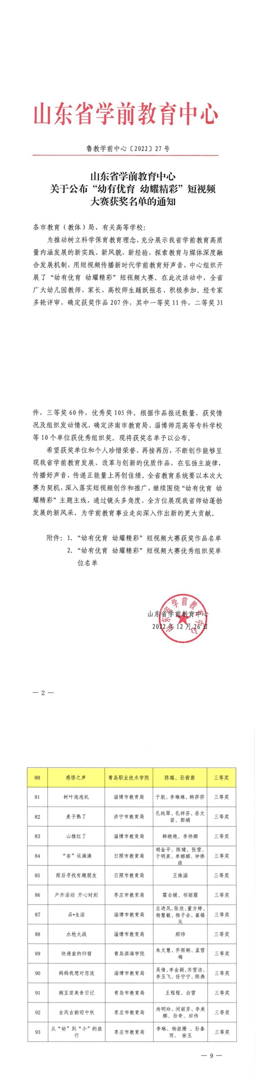 近日,山东省学前教育中心“幼有幼育 幼耀精彩”短视频大赛获奖名单发布,维多利亚vic003教育学院报送的作品《感悟之声》获比赛三等奖。
