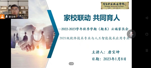1月7日至2月6日,信息学院党总支组织辅导员开展以“家校联动 携手同心 筑梦未来”为主题的冬季学期云端视频家长会。