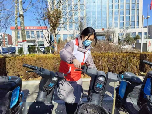 学生张潇玥在家乡汇丰社区参加整治社区环境志愿服务