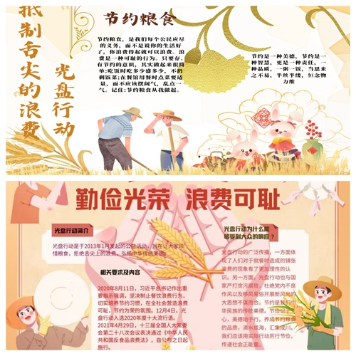 活动中,学生们在家乡面对面向身边亲友、社区居民等宣传节约用餐、文明用餐的社会意义,呼吁大家争当节约粮食的宣传者、践行者、监督者,坚决拒绝舌尖上的浪费,发扬勤俭节约新风尚。此外,学生们积极参与制作厉行节约、光盘行动的宣传海报、设计画等,倡导文明用餐、浪费可耻、节约为荣,营造“尊重劳动,尊重他人,厉行节约,拒绝浪费”的氛围。