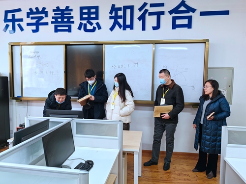 2月23日,市人社局技能人才评价工作质量督导组一行3人来校检查指导职业技能等级认定工作,学校党委副书记邢广陆,培训学院、旅游学院和生物与化工学院相关负责人接待了督导组。
