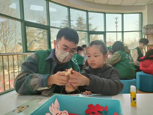 志愿者与小朋友们一起做手工