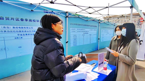 3月3日上午,2023年中国(山东)自由贸易试验区青岛片区春季高校毕业生专场招聘会在青岛西海岸新区举行,生物与化工学院分管就业的副院长带队,深入推进访企拓岗,把握校企合作机会,为2023届毕业生开拓高质量就业岗位。