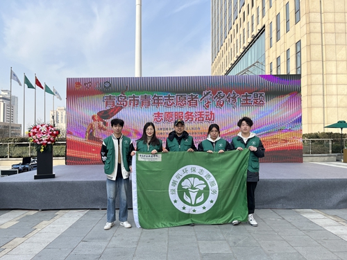 3月3日,“绿喇叭”环保志愿服务团队师生5人赴青岛市市北区CBD万达广场参加由共青团青岛市委、市北区人民政府主办的青岛市青年志愿者学雷锋主题志愿服务活动。