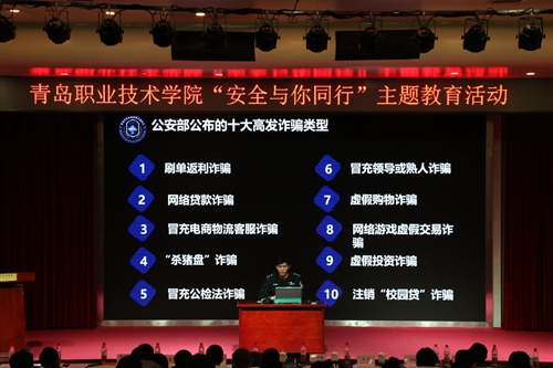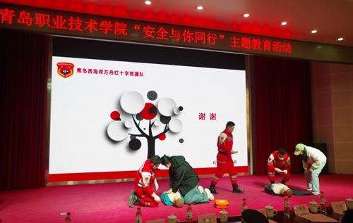 活动中,青岛地铁集团有限公司行政执法大队队员徐晓琳介绍了青岛地铁发展概况、地铁运营以及安全文明乘车相关规定;青岛地铁公安分局刑警大队警犬工作站的训导员向大家现场展示了警犬在案件侦破、维稳处突、治安巡逻等各类日常警务中的工作状态,使学生们了解了警犬在参与日常追踪、搜捕、搜毒、搜爆等警务实战中发挥的重要作用,同时警示学生远离毒品;地铁分局灵山卫派出所胡家铭等3位警官讲解了防范电信诈骗等安全防护知识,并现场进行了女子防范与防卫技术演练教学,帮助学生提高安全防范意识,增强遭遇突发情况时的基础自救能力,有效避免潜在危害;西海岸方舟红十字救援队队长李斌与队员们详细讲解了心肺复苏等急救知识,并现场进行心肺复苏演练教学,通过现场学习,学生们初步掌握了应对突发事件的救助素养和技能;山东诚功律师事务所律师张慧进行了套路贷、帮信罪等方面的讲解,帮助学生树立合理的消费观,并加强网贷风险的防范意识,提高防骗能力。活动现场气氛热烈,学生们积极参与互动,纷纷表示此次安全主题教育活动联系生活实际,内容充实有趣,干货满满,为大家又一次敲响了安全与法制的警钟。