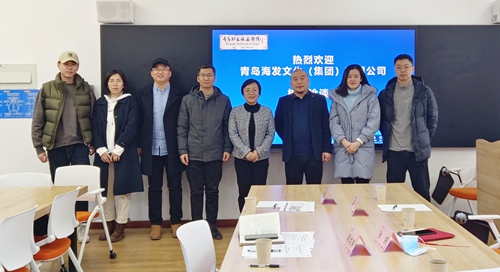 3月1日,青岛海发文化集团海发文化科技运营总监孙振、渠道经理孟爽、邢潇一行3人来校进行商谈混合所有制办学项目共建事宜,艺术学院党总支副书记郭静、副院长周洪涛、影视动漫专业群教研室主任与专业负责人参加座谈会。