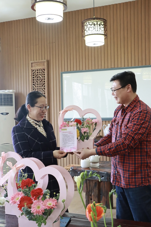 活动结束时,孙庆和张慧分别代表体育健康学院将花艺作品和节日贺卡赠送给学院教工家属和女教工代表,感谢所有教职工及其家属对学院发展作出的积极贡献和辛勤努力,祝愿学院发展在全体教工的共同努力下迈上新台阶。