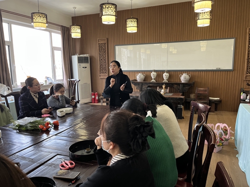 旅游学院苗欣老师为体育健康学院老师讲解并现场指导插花艺术