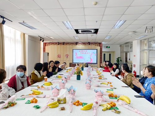 邢广陆代表学校向各位女教师表示节日的祝福。她说,一直以来,大家在各自岗位上积极拼搏、无私贡献,做了许多卓有成效的工作,先进典型不断涌现。她希望大家继续发挥自身优势,在发扬奉献精神的同时,注重身心健康,劳逸结合,弹奏好工作和家庭的幸福双重奏,快乐工作、健康生活。