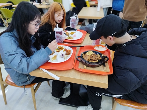 调研小组在山东科技大学学苑餐厅品尝菜品