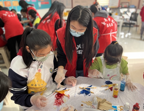 3月11日,艺术学院“艺之爱”志愿服务队师生共赴张家楼街道石河头村人文社区共同体家园,以街道关爱青春行动为契机,面向“春蕾计划”女童、“希望小屋”困境青少年开展了“志愿星火传 艺美染童心”学雷锋红色主题扎染活动,为青少年儿童带来了富有意义且充满趣味的红色教育课堂。