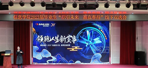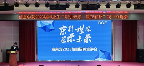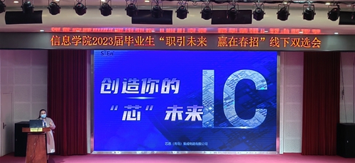 3月15日,信息学院“书记校长访企拓岗促就业”专项活动——“芯屏专场招聘会”在学校艺术厅举行。副院长乔璐出席活动,就业处(校企合作处)、信息学院相关负责人以及360余名毕业生参加了活动。活动邀请了青岛京东方光电科技有限公司、芯恩(青岛)集成电路有限公司和赛轮集团3家行业龙头企业来校为学生作行业发展报告并启动春招活动。