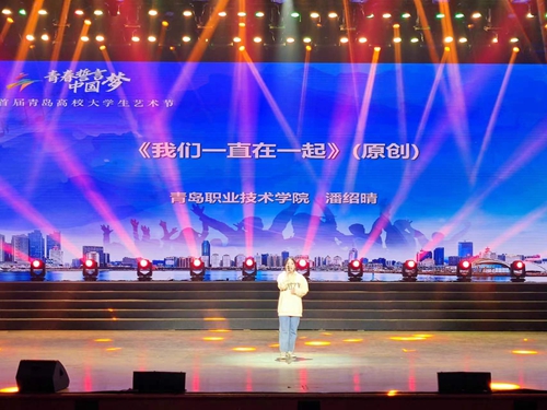 当天同时启动“唱响青春”青岛高校大学生歌手风采专场展示,来自青岛25所高校的“好声音”一展歌喉、同台竞唱,维多利亚vic003音乐教育专业学生潘绍晴演唱的学校原创歌曲《我们一直在一起》,歌声充满希望与力量,深情地诉说着心中火热的青春和来自“青职”的感动,获得了现场观众的热烈掌声。