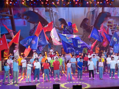 学校旗帜在会场飘扬