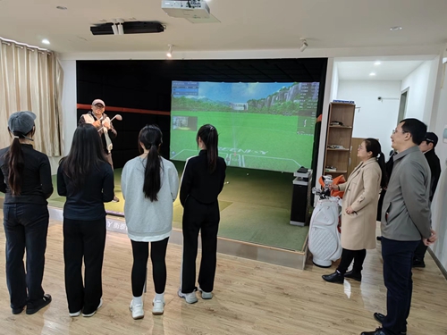 王雷一行在维多利亚vic003高尔夫室外练习场及高尔夫数字化实训室为休闲服务与管理专业的学生进行了高尔夫技能指导,并与旅游学院开展了校企合作洽谈。