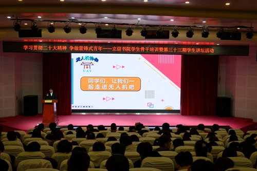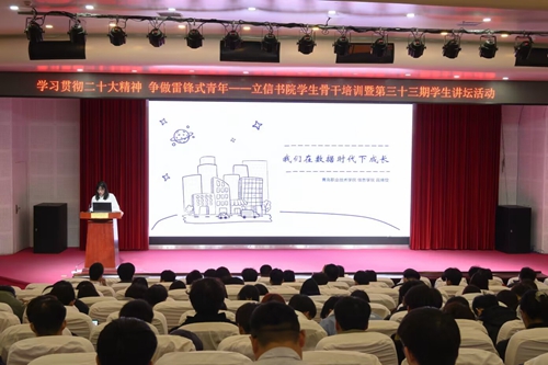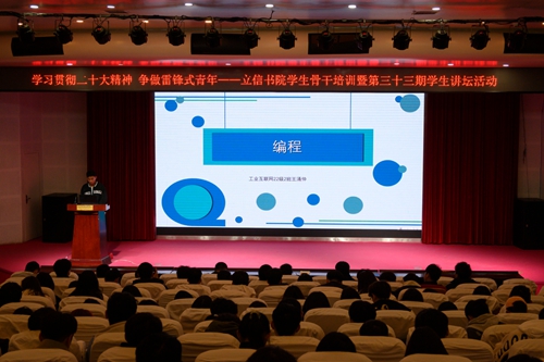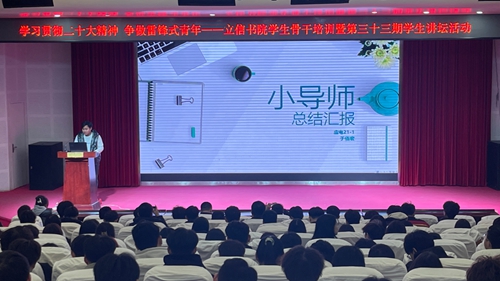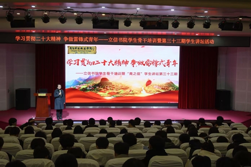 3月17日晚,信息学院围绕“学习贯彻党的二十大精神,争做雷锋式青年”为主题举办第三十三期“青之信”学生讲坛活动,信息学院党总支书记李明杰,辅导员罗卫鹏,370名学生代表参加了此次活动。