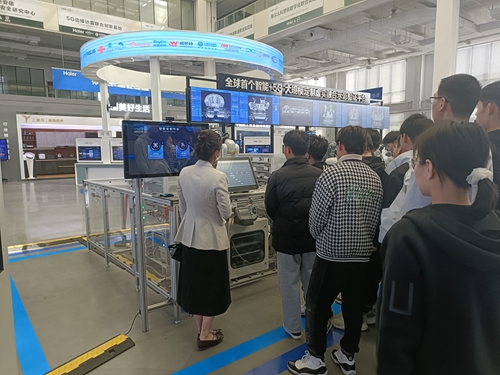 在海尔工业智能研究院卡奥斯工业互联网示范线,学生们参观了全球首个“智能+5G”大规模定制虚实融合示范验证平台,现场体验了个性化定制洗衣机的全过程,加深了对工业互联网平台赋能下的企业个性化定制、智能化制造、数字化管理、服务化延伸的认识理解。学生们还进一步了解了卡奥斯平台在房车物联、工业“人联网”作业感知、工业安全智慧管控、生物医疗安全、衣联网等领域的应用案例。
