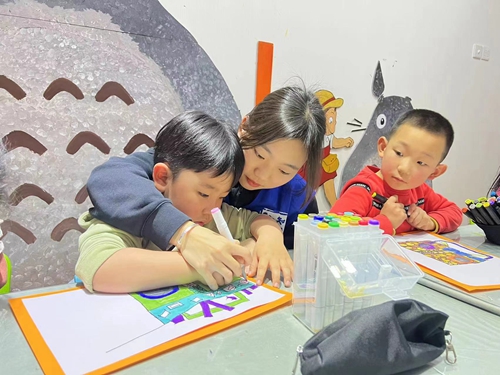 活动中,志愿者们充分发挥自己的特长,为孩子们提供绘画指导、学业辅导及手工制作等公益微课,以多彩的兴趣课程丰富孩子们的课余生活。活动之初,孩子们还有些拘谨,但随着活动的开展,孩子们与志愿者渐渐熟络起来,纷纷加入其中。课堂上充满欢声笑语,志愿者同孩子们一起创作出一幅幅充满爱的作品。