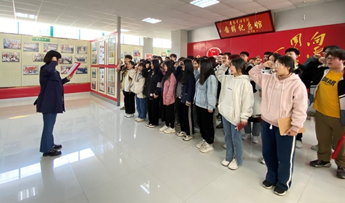 研学结束后,党员教师带领习近平新时代中国特色社会主义思想研学社、青马课堂、“匠心• 匠星”、传统文化学研社等社团成员在纪念馆庄严宣誓:志愿向雷锋同志学习,跟随榜样步伐奋力向前。