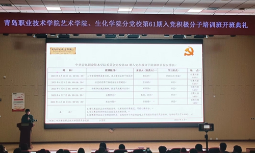 3月28日,艺术学院、生物与化工学院分党校在创意楼B座401教室举办了第61期入党积极分子培训班开班典礼。艺术学院党总支、生物与化工学院党总支相关负责人,艺术学院专职组织员、生物与化工学院第三党支部书记及218名入党积极分子参加了开班典礼。