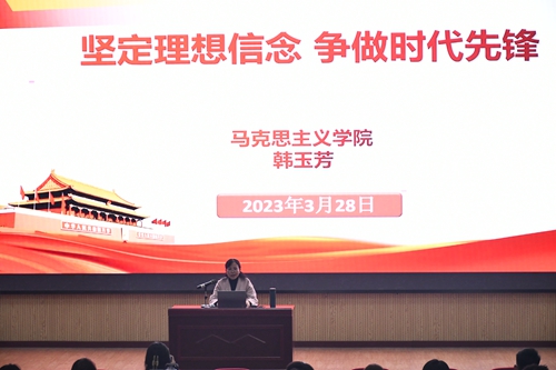 马克思主义学院教授韩玉芳讲授题为《坚定理想信念 争做时代先锋》的党课