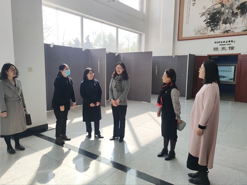 党委副书记邢广陆与峨眉山路小学党支部书记邢毅丽交流
