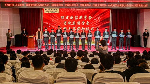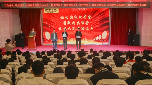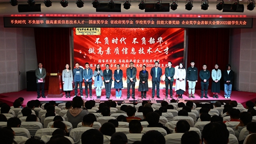 3月30日,信息学院举办“不负时代 不负韶华 做高素质信息技术人才”——国家奖学金、省政府奖学金、学校奖学金、企业奖学金和技能大赛奖励表彰大会暨2022级学生大会。北京学佳澳软件科技发展有限公司院校总监刘玉波,学校教务处、学生处负责人,信息学院领导班子成员、各专业教研室主任、党团组织负责教师、教师代表、2022级辅导员教师及2022级全体学生共850余人参会。会议主会场设在艺术厅,报告厅、修能楼301、503和504作为分会场同步直播会议。信息学院副院长徐占鹏主持会议。