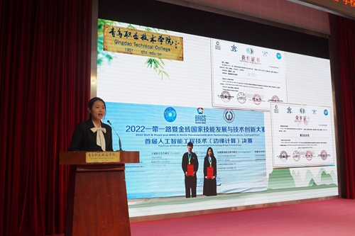 学生处处长韩煜为获技能大赛奖励的学生颁奖