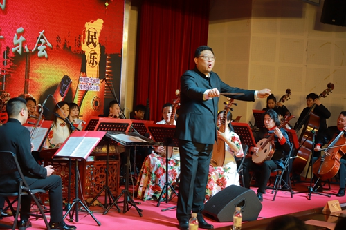 民乐传承着中华文化的星火,又承载着时代精神的风华。一曲欢快喜悦的民族管弦乐合奏《喜讯到边寨》拉开了“国风雅韵”民族音乐会的序幕。既有高亢辽阔的《战马奔腾》,又有宛转悠扬的《红楼梦序曲》,更有别具一格的《菊花台》,二胡与大提琴交相辉映,奏响了传统与现代的融合与碰撞。现场观众时而置身于歌舞欢腾的瑶寨,时而置身于万马奔腾的蒙古草原,在律动的旋律中遍览祖国的大好河山。唢呐与乐队共同演绎的经典之作《百鸟朝凤》,以其繁复的演奏技巧和生动的鸟鸣描摹,展现出一副莺歌燕舞、生机勃勃的自然景象,感染了在场的每一位师生,现场响起阵阵雷鸣般的掌声,将演出气氛推向高潮。演出在观众与乐队互动的《射雕英雄传》曲目中落下帷幕。