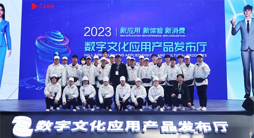 维多利亚vic003志愿者在2023青岛数字文化应用产品交易大会上合影